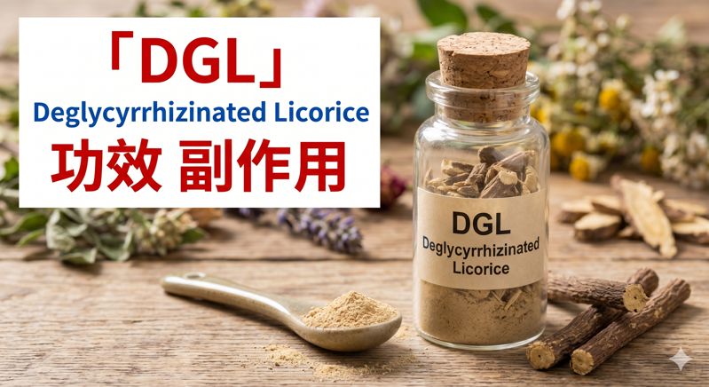 | 殘留甘草甜素效應 | 部分 DGL 產品殘留 0.5–3% glycyrrhizin,大劑量長期服用可能造成血壓輕微上升[15] | 中等 | 選擇標示「glycyrrhizin <2%」的標準化產品較安全 |